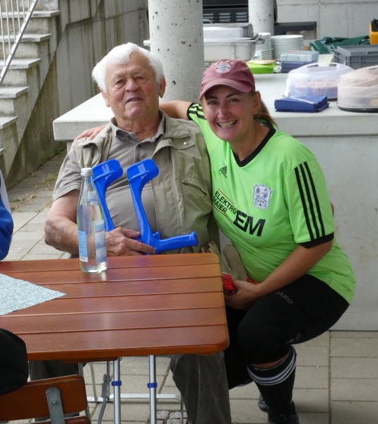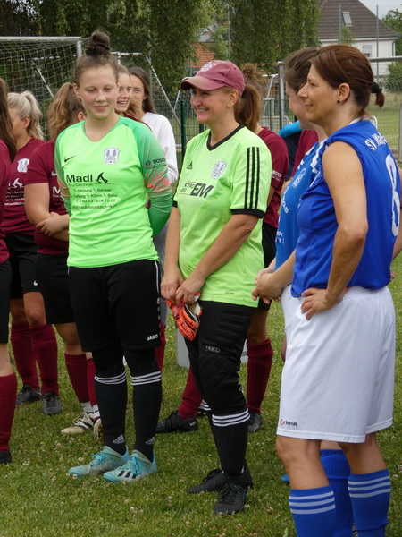 Aus diesem Grund hat es sich der Verein nicht nehmen lassen, für sie aufgrund ihrer Verdienste ein Abschiedsspiel auszurichten, das am Freitag, den 23. Juni auf unserer Sportanlage ausgetragen wurde. Hierbei standen sich unsere aktuelle Damenmannschaft und eine Elf mit „Ehemaligen“ gegenüber. Man sah auf deren Seite so namhafte Spielerinnen wie Rosi Spiel, Tina Losbichler, Cilly Kern, Lisa Bachleitner, Andrea Michel, die allesamt viele Jahre lang die Waldhauser Damenfußball-Landschaft prägten. In der von Schiedsrichter Georg Rost souverän geleiteten Partie behielten nach 90 recht unterhaltsamen Minuten knapp mit 2:1 die Oberhand. Für die aktuelle Damentruppe trafen dabei Veronika Bichler und Eliza Stecher, bei den „Old-Girls“ zeichnete Rosi Spiel für den Treffer verantwortlich. |