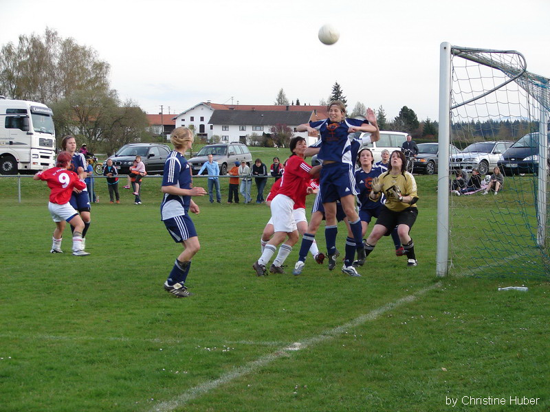 Mit einem deutlichen 4:0-Sieg gegen die Mannschaft des TuS Bad Aibling landeten die Damen des SV Waldhausen in der Bezirksliga Ost einen weiteren Dreier und haben damit ihren zweiten Tabellenplatz hinter dem 1.FFC Wacker München 3 gefestigt. Durch gute Defensivarbeit und konsequentes Zweikampfverhalten nahmen die SVW-Damen vor heimischer Kulisse bereits früh das Heft in die Hand und nutzten bereits die erste gute Torgelegenheit in der 12. Minute zum Führungstreffer, bei dem die Gästetorfrau Lisa Völkel nach einer Flanke von Barbara Leithner den Ball nur abklatschen und Sabine Thurner abstauben konnte. Wenige Minuten später kam Barbara Leithner auf der linken Seite erneut zum Flanken und bediente Stürmerin Elisabeth Lipold, die die Kugel zum zweiten Mal im Aiblinger Kasten versenkte. Die Schwab-Truppe dominierte das Match weiter und baute nach einer guten halben Stunde durch Manuela Schillinger den Vorsprung auf 3:0 aus, als sie nach einem Freistoß von Kapitän Tina Losbichler zum Schuss kam und erfolgreich abschloss. Nach dem Seitenwechsel verflachte die Begegnung zwar deutlich, die Kurstädterinnen setzten im Angriffspiel nur wenig Akzente und auch die Gastgeberinnen schalteten einen Gang zurück, ohne jedoch die Partie aus der Hand zu geben. In der 72. Minute fiel schließlich der vierte Waldhauser Treffer, den Tina Losbichler mit einem Freistoß aus 25 Metern genau unter die Torlatte besorgte. SVW-Trainer Bernhard Schwab lobte nach dem Schlusspfiff den großen Siegeswillen seiner Elf, die dank einer geschlossenen Mannschaftsleistung als verdienter Sieger den Platz verlies. Nach dem ersten Punktgewinn in der Vorwoche kam die zweite Garnitur der SVW-Damen bei der DJK Traunstein erneut zu einer Punkteteilung. Christine Lindner sorgte dabei in der 90. Minute für den 1:1-Ausgleichstreffer. J.P./B.L. |