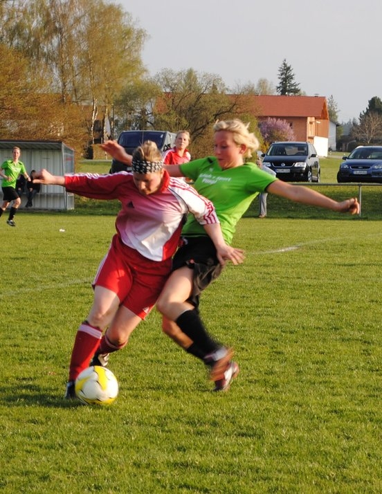 Eine durchwachsene Leistung lieferten die Damen des SV Waldhausen im Derby gegen den Tabellenletzten TSV Chieming ab, so dass die Truppe von Stefan Heindl, die zwar das Geschehen über weite Strecken der Partie im Griff hatte, letztlich nicht über ein torloses Unentschieden hinaus kam. In der Anfangsviertelstunde konnten die Chieminger Gäste die Begegnung noch ausgeglichen gestalten, in der Folge übernahmen aber die Gastgeberinnen mehr und mehr das Kommando und erspielten sich durch Regina Irl, Manu Schillinger und Rosi Spiel gute Torgelegenheiten. Doch fehlte es an der notwendigen Kaltschnäuzigkeit und die Chancen wurden entweder leichtfertig vergeben oder die Torfrau der Chieminger war zur Stelle. Auf der Gegenseite war es für die SVW-Hintermannschaft nicht schwierig, die wenigen Angriffsversuche der Gäste zu vereiteln. Nach dem Seitenwechsel hatte Christine Lindner im SVW-Trikot die große Möglichkeit, ihr Team in Führung zu schießen, doch ihr Schuss wurde gerade noch von der Linie gekratzt (52.). Im weiteren Verlauf der Partie ließ die Konzentration und die Laufbereitschaft in der Waldhauser Mannschaft deutlich nach, so dass Chieming immer öfter vor dem Kasten von Christine Huber auftauchte. Die Abwehr um Tina Losbichler wurde dabei einige Male gehörig unter Druck gesetzt, doch auch die Chieminger Angriffsbemühungen blieben letztlich erfolglos. Auf der anderen Seite vergaben Manu Schillinger, Regina Irl und Karin Mittermayr ihre Möglichkeiten, so dass bis zum Schlusspfiff beim torlosen Spielstand blieb. Die 2. Mannschaft des SV Waldhausen unterlag in der Kreisklasse 2 dem SC Rechtmehring 2 mit 1:7.