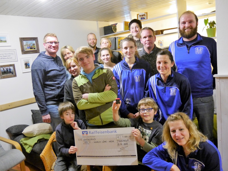 „Miteinander füreinander“ Die Fußballabteilung des SV Waldhausen startet engagiert in das neue Jahr. Mit einer großzügigen Spende unterstützen sie die HPI 1-Gruppe des Wilhelm-Löhe-Heim für diverse Freizeitaktivitäten im Jahr 2017. Katja Hundseder, Tochter des Damentrainers Georg Hundseder, besuchte im vergangenen Sommer mit ihren fußballbegeisterten Kindern den SV Waldhausen. Seit dem damaligen Benefizspiel blieb man stets in Kontakt und als die „Waldhauser“ erfuhren, dass man viel Gutes tun kann durch eine finanzielle Unterstützung, halfen sie sofort aus. So legten die Herren- und Damenmannschaften, sowie die Jugendabteilung zusammen und man erreichte eine Summe von 800 €. Auch Georg Dettenbeck, Hauptsponsor der Damenmannschaft, half ebenfalls mit einer Spende aus. Zusammengerechnet wird die Heimgruppe mit einer Spende von 1000 € für Freizeitaktivitäten unterstützt.