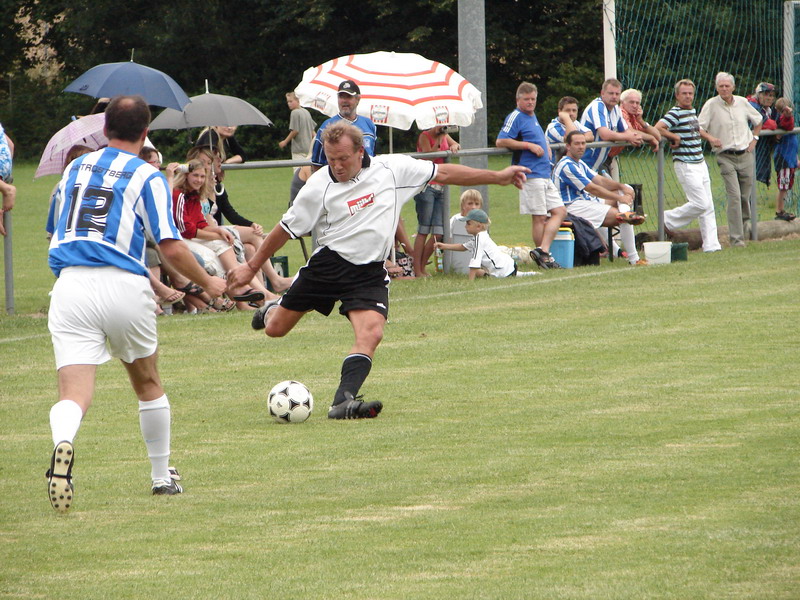 Das nachfolgende Foto entstand bei der 40-Jahr-Feier unseres Vereins im Jahr 2007 beim Jubiläumsspiel der „Ehemaligen“ gegen die FA-Trostberg und zeigt auch zu dieser Zeit noch seine Dynamik am runden Leder, für die er neben seinem unbändigen Kampfgeist über viele Jahre auf den heimischen Fußballplätzen bekannt war. |