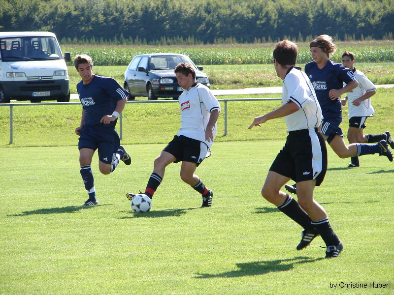 Zur Pause sprach im Kreisklassen-Duell zwischen dem SV Waldhausen und der Zweiten Garnitur des TSV Ampfing beim Stand von 2:0 alles für die Gäste, am Ende ging das 2:2-Unentschieden, mit dem der SVW der bisher ungeschlagenen U 23-Mannschaft der Schweppermänner erstmals einen Punkt abtrotzte, dank einer starken Vorstellung der Gastgeber vollauf in Ordnung. Die Höfner-Truppe, die sich trotz des Halbzeitrückstands sogar bis dahin schon ebenbürtig präsentierte, war nach dem Wechsel in läuferischer und spielerischer Hinsicht top und hätte bei konsequenterer Chancenverwertung durchaus sogar noch mehr herausholen können. Allerdings mussten sie bereits ab der 18. Minute einem Rückstand hinterherlaufen, weil Ampfings Dany Mayer nach einer weiten Hereingabe von Franz Hötzinger SVW-Keeper Tibor Bakay zum 0:1 überwand (18.). Dabei hätte es vier Minuten vorher schon im Ampfinger Kasten klingeln können, ein Freistoß von Elvis Nurikic landete jedoch an der Querlatte und weil in der 35. Minute Martin Lochner nach Vorarbeit von Max Mühlegger vor dem Tor zu wenig kaltschnäuzig war, blieben die Waldhauser weiter ohne Erfolgserlebnis. Ein solches hatten in der 40. Minute auf der anderen Seite erneut die Gäste, nachdem Christian Springer im Mittelfeld ein Kopfball-Duell für sich entscheiden konnte und Dany Mayer dessen Vorarbeit alleine vor dem Kasten eiskalt zum 0:2 ausnutzte (40.) Scheinbar unbeeindruckt von diesem Rückstand hielten die Hausherren bereits 120 Sekunden nach dem Wechsel dagegen. Marco Kirmaier hatte sich über die linke Seite durchgetankt, TW Neumeier konnte dessen Schuss gerade noch abwehren, allerdings kam nach dessen Rettungstat ein Handspiel von Franz Hötzinger dazu, das SR Florian Greisinger (TSV Rimsting) mit Strafstoß ahndete, den Alex Mitter bombensicher zum 1:2-Anschlußtreffer verwandelt. Der SVW war damit wieder voll im Geschäft. Zunächst scheiterte Andreas Hilger in der 56. Minute zwar noch am Ampfinger Schlussmann Felix Neumeier und auch Max Mühlegger fand zehn Minuten später im letzten Mann der Gäste seinen Meister, in der 69. Minute war aber doch der Ausgleich fällig. Bei einem optimal getimten Flankenball von Max Mühlegger stand Martin Lochner goldrichtig, der Ex-Grünthaler hielt sein Köpfchen hin und sorgte mit seinem dritten Saisontor für das 2:2 (69.). Und auch wenn die Ampfinger in der Nachspielzeit durch den eingewechselten Rene Bittner sogar noch den Siegtreffer auf dem Schlappen hatten, war das Unentschieden für Mühlegger & Co. „dank der bisher stärksten Saisonleistung“ (O-Ton Peter Höfner) am Ende hochverdient. |