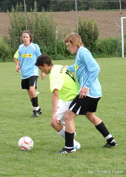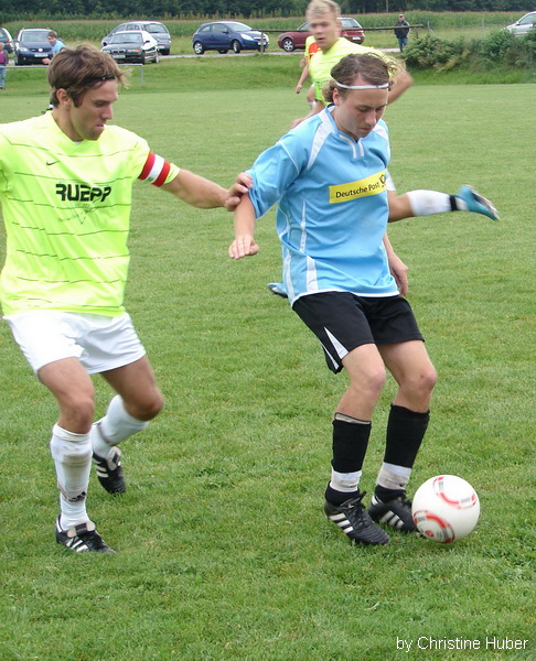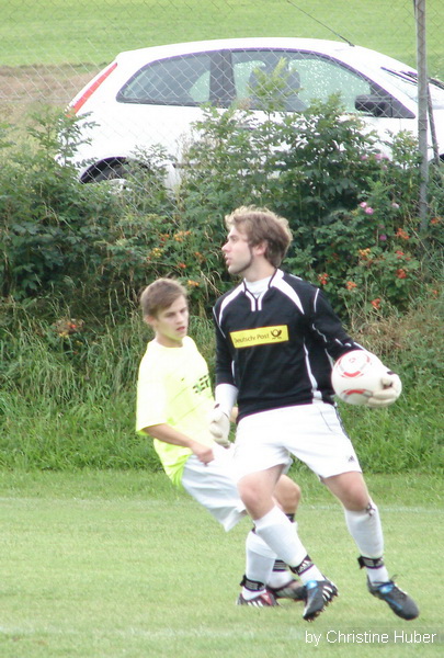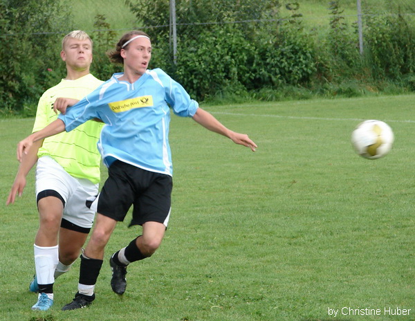 Dank einer konzentrierten Leistung gewann der SV Waldhausen sein Heimspiel in der Kreisklasse 2 mit 4:1 gegen den TSV Eiselfing. Heimcoach Stefan Balk, der seine Mannschaft perfekt auf den Gegner vorbereitete, meinte nach dem Spiel, dass es ein verdienter und wichtiger Sieg war. So kann der SVW sich im vorderen Tabellen Drittel Fest setzen. Die Tore für die Hausherren erzielten Martin Lochner (2), Thiemo Leupoldt, und Florian Mühlegger. Die erste gute Tor Möglichkeit erspielten sich die Gastgeber in der 22 Minute, Martin Lochner umspielte die Verteidigung scheiterte aber an Gäste Torwart Andreas Kubik. Drei Minuten später war er gegen den Volleyschuss von Thiemo Leupoldt machtlos. Michael Kirmaier lupfte das Spielgerät zu Leupoldt der sofort abzog und das 1:0 markierte. Die Gäste, die ohne ihren Kapitän Martin Oberlinner (Urlaub) antraten, kamen im ersten Spielabschnitt meist durch den agilen Hannes Dirnecker zu Torchancen. Dieser scheiterte aber oft an SVW Goalie Christian Schuhböck. In der 25 Minute gelang den „Kleeblättern“ der Ausgleich. Ein Freistoß von Andreas Müller titschte im 5 Meter Raum auf, Schuhböck konnte nicht mehr reagieren. Nun war der SVW wieder am Drücker, die Mannen um Kapitän Elvis Nurikic erspielten sich Dank ihrer Offensiven Ausrichtung, sie spielten mit Drei Stürmern, immer wieder gute Tor Chancen. In der 42 Minute scheiterte Martin Lochner nach einem Dribbling am Gäste Keeper. In der Nachspielzeit der ersten Halbzeit die Spiel Entscheidende Szene. Der gut aufgelegte Martin Lochner setzte sich gegen seinen Gegenspieler durch, legte quer auf Florian Mühlegger der aus 8-Metern das 2:1 markierte. Der herrvoragend leitende Schiedsrichter Georg Lohr (Oberbergkirchen) pfiff nach diesem Treffer die erste Halbzeit sofort ab. Beim gang in die Kabinen beleidigte Markus Dirnecker den Schiri und sah dafür die Rote Karte. Trotz der Unterzahl waren es die Gäste die nach dem Wechsel den Ton angaben. Der Mannschaft von Robert Kalamar gelang es nun den Ball in den eigenen Reihen zu halten. So erspielten sie sich gute Schussmöglichkeiten, die aber nichts einbrachten. Beim SVW war der starke Thiemo Leupoldt der Mann, der für Torgefahr sorgte. Sein Kopfball nach einer Ecke, in der 66 Minute war Beute für Gäste Torwart Kubik. Zehn Minuten später machte es sein Sturmpartner Martin Lochner besser und erzielte das 3:1. Nach einem Fehlpass von Florian Dirnecker, setzte Florian Kailer den Torschützen in Szene der aus 16 Metern frei vorm Torwart traff. Vor ca. 80 Zuschauern versuchten die Gäste noch mal alles um die drohende Niederlage zu vermeiden. Hannes Dirnecker traf aber nur den Pfosten. Zum Ende der Partie machte sich die Überzahl der Hausherren bemerkbar. So war es nicht verwunderlich das in der 90 Minute noch das 4:1 fiel. Martin Lochner war im 16er nur durch ein Foul zu stoppen, den fälligen Elfmeter verwandelte er selbst und setzte so den Schlusspunkt einer guten Kreisklassen Begegnung. |