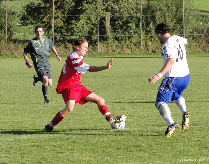 Erneut fuhr die starke Heimelf vom Trainerteam Balk/Nurikic einen Sieg trotz Unterzahl ein. Durch das Top-Sturmduo Leupoldt und Lochner konnten die nächsten 3 Punkte eingefahren werden, an einem sonnigen Mittwoch-Nachmittag. Erst in der 81. Spielminute gelang es Thiemo Leupoldt das 1:0 zu schießen. Bereits in der 84. Minute gelang es Martin Lochner auf ein 2:0 zu erhöhen. Mit schlechten Voraussetzungen für einen Heimsieg ging der SV Waldhausen in dieses Spiel. Stammtorwart Christian Reiter ist noch weiterhin verletzt, ebenso Andreas Hilger konnte verletzungsbedingt noch nicht auflaufen. Auch wollte sich die Elf um Hans Maier sich für das Hinspielergebnis von 1:3 vor ca. 4 Wochen revanchieren. Nichts desto trotz versuchte Kapitän Martin Lochner erneut mittels Sieg die nächsten drei Punkte für den Aufstieg mitzunehmen. Die Mannschaft um Otter Christian hielt sehr gut dagegen und drängten, mit Erfolg, den Gastgebern ihr Spiel auf. Es zeigten sich mehr Karten durch den pfiff-freudigen Schiedsrichter als Torchancen im Spiel auf. Erst in der 22. Minute kam es zur ersten richtigen Chance für den SVW. Nach einer Flanke durch Hans Zieglgänsberger direkt auf den Kopf seines Mitspielers Nurikic Elvis hätte dieser Kopfball nur noch verwertet werden müssen, jedoch schaffte Spielertrainer Nurikic es nicht Power in den Kopfball zu bringen. Bereits in der 23. Spielminute bolzte erneut Nurikic aus ca. 20 m den Ball mit Pepp gegen den Pfosten von Keeper Pauker Christian. Die erste nennenswerte Aktion der Gäste zeigte sich in der 38. Spielminute. Obermaier Christoph lief komplett mit Ball über den Platz und wurde nicht attackiert, so konnte er einen Pass rechts raus auf Benstetter Andreas spielen, welcher Keeper Alexander Mitter ausspielte und schoss. Michael Kirmaier aber rettete den Spielstand von 0:0 und so ging es auch in die Pause. Nach der Halbzeitpause ging der Tabellenführer ebenso aggressiv ins Spiel mit dem Ziel den Tabellenplatz zu verteidigen und mittels 3 Punkten Abstand auf Zweitplatzierten DJK SV Griesstätt zu gewinnen. So entstand ein Spiel aus mehreren tollen Möglichkeiten, die leider nicht genutzt wurden. Bereits in der 55. Spielminute spielte Thiemo Leupoldt die Abwehr des Gegners schwindlig, brachte jedoch keinen Schuss fertig. Vom SV Schonstett waren keine Torchancen mehr zu sehen jedoch leisteten sie effektiv Gegenwehr bis zur 81. Minute. Da gelang es Martin Lochner wieder einmal mehrere Gegner stehen zu lassen und zum Abschluss zu kommen. Dieser Schuss wurde jedoch fabelhaft vom fehlerfreien Torwart gehalten. Thiemo Leupoldt gelang es den Abstauber einzuschieben und das verdiente 1:0 war geschossen. Gleich in der 84. Spielminute konnte Martin Lochner nach flacher Hereingabe von Tom Großpietsch das 2:0 erzielen und das Spiel war vorüber. Trotz vieler Fouls und übertrieben vielen, teil unberechtigten Karten schaffte es der SVW erneut den SV Schonstett zu besiegen. Der SVW feiert nun vorzeitig den Nicht-Abstieg. Den irgendwas braucht man zum feiern. |