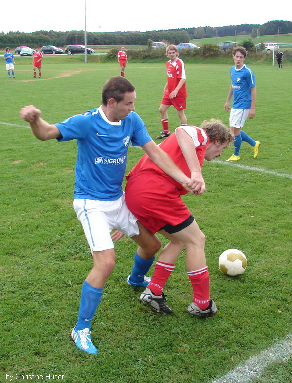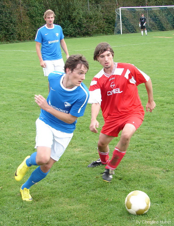 Mit dem Favoritensturz ist es bei der 2:3-Niederlage gegen den TSV Winhöring zwar nichts geworden, trotzdem zeigte die Truppe von Klaus Michel gegen den Kreisklasse-3-Tabellenführer das bisher beste Saisonspiel und musste sich am Ende nur knapp geschlagen geben. „Wir sind zwar nicht für unsere Leistung belohnt worden, trotzdem können wir aber darauf aufbauen“ trauerte Michel am Ende der auf gutem Niveau stehenden Kreisklassen-Begegnung dem verpassten Erfolgserlebnis nach. Bereits kurz nach dem Anpfiff des umsichtig leitenden SR Sebastian Heiml (Vfl Waldkraiburg) zeigten die Gastgeber, dass sie sich keineswegs verstecken wollten, denn Martin Lochner hatte bis zur sechsten Minute gleich drei gute Gelegenheiten, zweimal war Torwart Stefan Leitner auf dem Posten und der dritte Versuch landete nur knapp daneben. Anstelle der möglichen Waldhauser Führung klingelte es nach einer Phase, in der die TSV’ler mit schwungvollem Angriffsspiel ihre Stärke andeuteten, in der 24. Minute auf der anderen Seite, als ein von Simon Salzinger vom 16er-Eck getretener Freistoß durch Freund und Feind hindurch ins Netz trudelte. Lochner & Co. liesen sich dadurch jedoch nicht beeirren und schlugen prompt zurück, denn nur drei Minuten später egalisierte Kapitän Elvis Nurikic nach schönem Doppelpaßspiel mit Martin Lochner diesen Treffer. Bis zur Halbzeit hätten die Waldhauser eigentlich noch nachlegen müssen, weil aber Lochner nach einem Sololauf das Ziel verfehlte (30.), Andreas Hilger bei einem Freistoß nur Aluminium traf (32.) und Elvis Nurikic in der 44. Minute in Torwart Stefan Leitner seinen Meister fand, blieb es bei dem zu diesem Zeitpunkt für die Gäste mehr als schmeichelhaften 1:1. Erst kurz nach dem Wechsel liesen die Winhöringer in der Offensive wieder aufhorchen, SVW-Schlussmann Alex Spahmann vereitelte aber mit einer Klasseparade gegen Nikolaus Sigrüner den zweiten Winhöringer Treffer. In der 55. Minute hatten erneut die Gastgeber die Führung auf dem Schlappen, bei einer Hereingabe von Martin Lochner kamen Elvis Nurikic und Andreas Hilger aber nicht mehr an die Kugel. Zehn Minuten später konnte der Waldhauser Anhang dann doch jubeln, nachdem Caner Goekduman Martin Lochner im Strafraum regelwidrig zu Fall gebracht hatte und Andreas Hilger den fälligen Strafstoß sicher zum 2:1 verwandelte. Der Vorsprung hielt allerdings nur sechs Minuten, weil Winhörings Manuel Fiederer nach Vorarbeit von Simon Salzinger aus 10 m ins Schwarze traf. In der Schlussphase ergaben sich Chancen hüben wie drüben, zunächst scheiterte Manuel Fiederer an SVW-Torwart Spahmann (75.), dann verzog Andreas Hilger zuerst nach einem Lochner-Paß nur knapp (76.) und scheiterte auch mit einem Freistoß am glänzend reagierenden Gästekeeper Leitner. Der am Ende glückliche Siegtreffer für Winhöring fiel schließlich in der 82. Minute durch Defensivmann Max Daferner, der die Kugel nach einer Ecke vor die Füsse bekam und per Direktabnahme in den Waldhauser Kasten beförderte. |