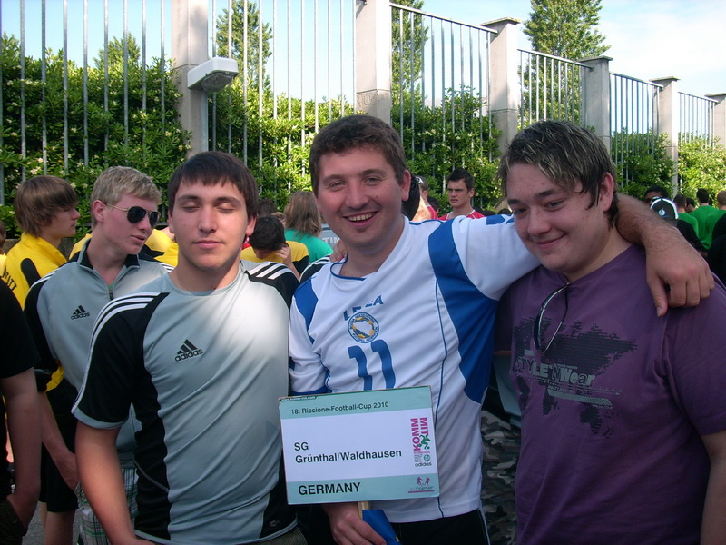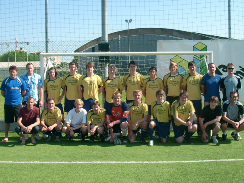 Samstag 22. Mai: Nach einer neunstündigen Anreise mit dem Bus war nach dem Bezug der Zimmer erst mal Strand angesagt. Abends stand ja das CL-Finale zwischen dem FC Bayern München und Inter Mailand auf dem Programm. Im Gegensatz zu anderen Mannschaften, die bereits um 22 Uhr wieder im Hotel erscheinen mussten, konnten wir das Spiel in voller Länge in einem Restaurant in Riccione verfolgen. Sonntag 23. Mai: Der Tag begann pünktlich um 7 Uhr mit einem 30-minütigen Strandlauf. Danach fand im Stadion eine Eröffnungsfeier mit Einmarsch aller 40 Mannschaften statt. Am Nachmittag standen bereits die ersten Spiele (jeweils 2x20 Minuten) auf dem Programm. Die Stärke der jeweiligen Mannschaften lassen sich nur bedingt vergleichen, da die Ligeneinteilung in Baden-Würtemberg etwas anders ist als in Bayern. Deshalb sind die Angaben in Klammern nur als Vergleichswerte zu verstehen. Das erste Spiel gegen den TSV Eningen (Kreisliga) verlief optimal und wurde durch Tore von Martin Kirmaier und Thiemo Leupoldt verdient mit 2:0 gewonnen. Danach ging es gegen die italienische Mannschaft "C.O. San Giovanni Bosco". Nach einer guten Möglichkeit zum Führungstreffer kamen die Italiener immer besser ins Spiel und behielten schließlich mit 3:0 die Oberhand. Kurz vor Schluss konnte sich Torwart Korbinian Furtner wieder einmal als Elfmeterkiller auszeichnen und den vierten Gegentreffer verhindern. Montag 24. Mai: Vormittag warteten mit dem VfR Merzhausen (Bezirksliga) und dem FC Bayern Fladungen (Gruppe) bereits die nächsten Gegner. Gegen den VfR war man die ersten Hälfte spielbestimmend, konnte aber daraus kein Kapital schlagen. Man lag sogar mit 0:2 im Hintertreffen, weil der Gegner die sich bietenden Chancen eiskalt verwertete. Die zweite Hälfte war ausgeglichen und Thomas Linner gelang sogar der Anschlusstreffer. Dennoch ging die Partie mit 1:4 verloren. Der spätere Finalist Fladungen war die einzige Mannschaft, gegen die es keinen Blumentopf zu gewinnen gab. Das Spiel ging zurecht mit 0:4 verloren. Der Nachmittag stand zur freien Verfügung und um 20 Uhr hieß der Gegener SpVgg Stetten Fildern (Kreisklasse). Mit ihrer einzigen Torchance erzielte die SpVgg vor der Pause den 1:0 Führungstreffer. In der zweiten Hälfte konnte Thomas Linner zwar den Ausgleich erzielen, dieser hatte jedoch nicht lange Bestand. Wenige Minuten vor dem Ende lag man durch einen Fernschuss erneut in Rückstand. Beim darauf folgenden Anstoß beschlossen Thomas Linner und Thiemo Leupoldt die Sache auf eigene Faust zu versuchen. Nach energischen Dribblings und tollen Doppelpässen stand schließlich Thomas Linner allein vor dem gegnerischen Torwart und erzielte den 2:2 Endstand. Um noch auf den vierten Gruppenplatz zu springen wäre ein Sieg nötig gewesen und so reichte es "nur" für das Spiel um Platz 9. Für den Abend war Party in Rimini angesagt. Zunächst wurde, mit Hilfe einer großzügigen Spendenaktion, eine dortige Pizzeria "geplündert". Vor unserer Abfahrt nach Italien hatten nämlich die anwesenden Leute im Vereinsheim Waldhausen noch 240 Euro als "Wegzehrung" gespendet. Herzlichen Dank dafür! Nach einigen "Ständchen" unserers neuen Traumduos Elvis Nurikic und Markus Wetterstetter war die Disco "Carnaby" das nächste Ziel. Zwischendurch wurde den schwarzafrikanischen Händlern jede Menge Zeug abgekauft, wobei es teilweise erstaunliche Preisunterschiede gab. Dienstag 25. Mai: Gegen die SGM Äpfingen/Baltringen (Bezirksliga) wurden jede Menge bester Torchancen versiebt. Wie schon bei den vorherigen Spielen zeigten sich die Gegner in diesem Punkt einfach kaltschnäuziger vor dem Tor. Mehr als ein Treffer durch Thiemo Leupoldt sprang nicht heraus und so ging die Partie mit 1:4 verloren. Einer der Höhepunkte der ganzen Veranstaltung war sicher das Finale der U19 zwischen dem FC Bayern Fladungen und dem SV Fellbach (Bezirksligameister/Würtemberg). Dabei stand nicht unbedingt das Geschehen auf dem Platz im Vordergrund, sondern die Stimmung auf den Rängen. Ausgehend von der SG Grünthal/Waldhausen, entwickelte sich ab Mitte der ersten Hälfte ein wahres Anfeuerungsspektakel. Immer mehr Mannschaften kamen hinzu und es dürften am Ende ca. 150 Leute gewesen sein, die sich auf beide Lager (Schwaben und Bayern) verteilten. Mit altbekannten Sprüchen wie: "Wenn wir wollen, kaufen wir euch auf." oder "Eins, zwei, drei - Oberkörper frei." war die Stimmung am Kochen und das Finalspiel für viele Zuschauer nur noch Nebensache. Mittwoch 26. Mai: Nach dem Frühstück traten wir die Rückreise an und man war sich einig, dass dies nicht die letzte Veranstaltung solcher Art bleiben wird. Abschließend noch ein Dank an meine Betreuerkollegen, die immer tatkräftig bei der Sache waren. Auch beiden Vereinen gilt der Dank, weil sie sich mit jeweils 50 Euro pro Spieler an den Kosten für diese Reise beteiligten.