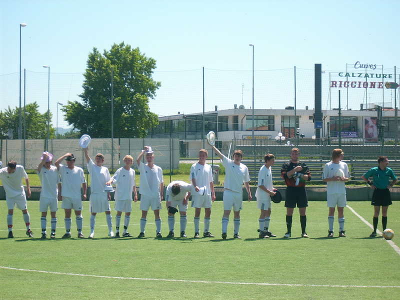 Ein voller Erfolg war die Reise zum internationalen Fußballturnier nach Riccione (Italien). Vom 22. Mai bis zum 26. Mai kämpften die Jungs bei durchweg heißen Temperaturen in insgesamt sechs Partien gegen Mannschaften aus Deutschland und Italien um die Punkte. Sportlich konnten die Spieler zwar nicht ganz vorne mithalten, dafür war die Stimmung und der Zusammenhalt in der Truppe aber um so besser. |